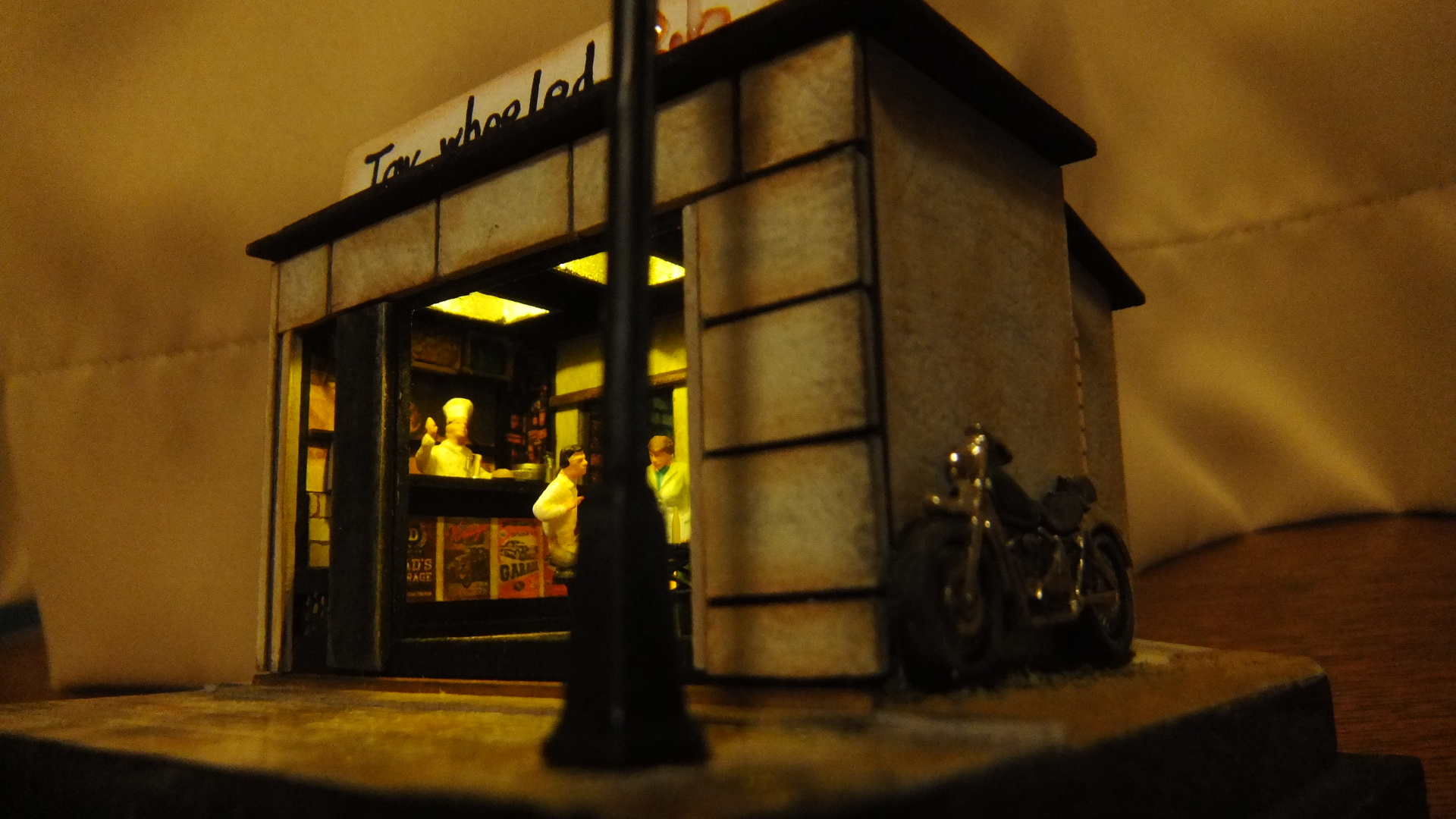 さてジオラマでは実車は再現されていませんが店内奥に一台、店外右側に一台